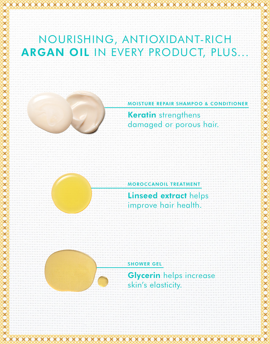 • Moisture Repair Conditioner: A fortifying conditioner infused with argan oil, essential fatty acids, and keratin proteins to gently detangle and help repair damaged hair.